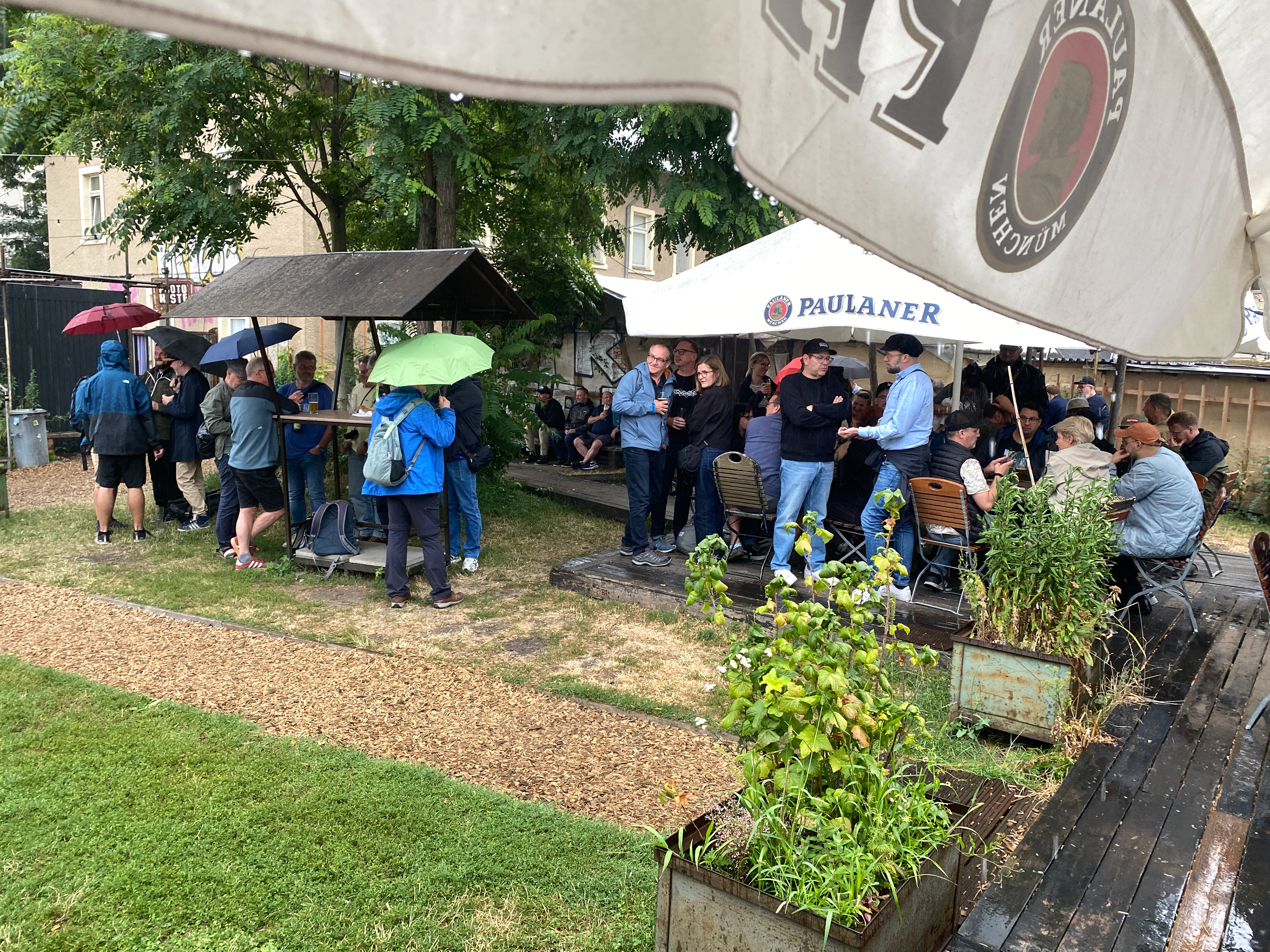 Anfangs hatte ich vieles geplant. Auch ein großes Videoprojekt mit Interviews etc. hatte ich im Hinterkopf. Da das Wetter, gelinde gesagt, bescheiden war, war meine Motivation fast auf dem Nullpunkt, was die Umsetzung meines Videos betraf. Außerdem freue ich mich jedes Jahr am meisten auf das Wiedersehen vieler Bekanntschaften sowie auf das Kennenlernen neuer StreetfotografInnen. Da wollte ich mich nicht durch ein Video ablenken lassen. Ich genoss also einfach das Quatschen und Philosophieren über die Streetfotografie sowie darüber hinaus. Durch das Wetter waren wir an das GEH8, unserem Basislager, gebunden, was gut für intensivere Gespräche war. Andererseits fiel die Open Gallery, die dieses Jahr auf dem Vorplatz der Frauenkirche hätte stattfinden sollen, leider sprichwörtlich ins Wasser. Dadurch kamen natürlich auch deutlich weniger Interessierte von außen, um sich die Open Gallery anzuschauen.