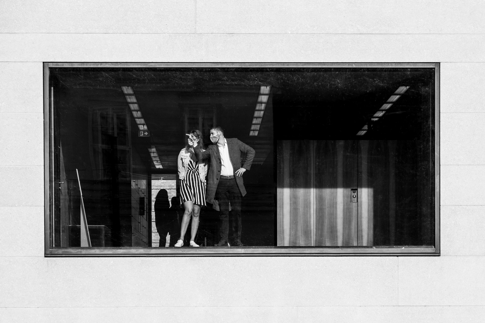Von dort machten wir uns bei mittlerweile 22 Grad auf dem Weg in das Museumsviertel. Ich hatte überhaupt keine Erwartungen daran. Meine Vermutung war lediglich, dass eventuell bei dem Sonnenschein in Verbindung mit den Museumsgebäuden interessante Motive auf uns lauerten. Ich hatte Recht! An der James-Simon-Galerie war zur Seite der Spree ein großes Fenster, an der ein Paar nach draußen schaute. Ein paar Meter weiter saßen zwei Frauen auf einer Treppe an der weißen Wand. Ich holte schnell mein 55-200mm Objektiv heraus, welches ich bis zu diesem Zeitpunkt noch nicht genutzt hatte, und hielt den entscheidenden Moment fest. Ich liebe diese Art von minimalistischen Bildern in Schwarz-weiß. Beides sind eines meiner Lieblingsbilder des gesamten Trips nach Berlin.