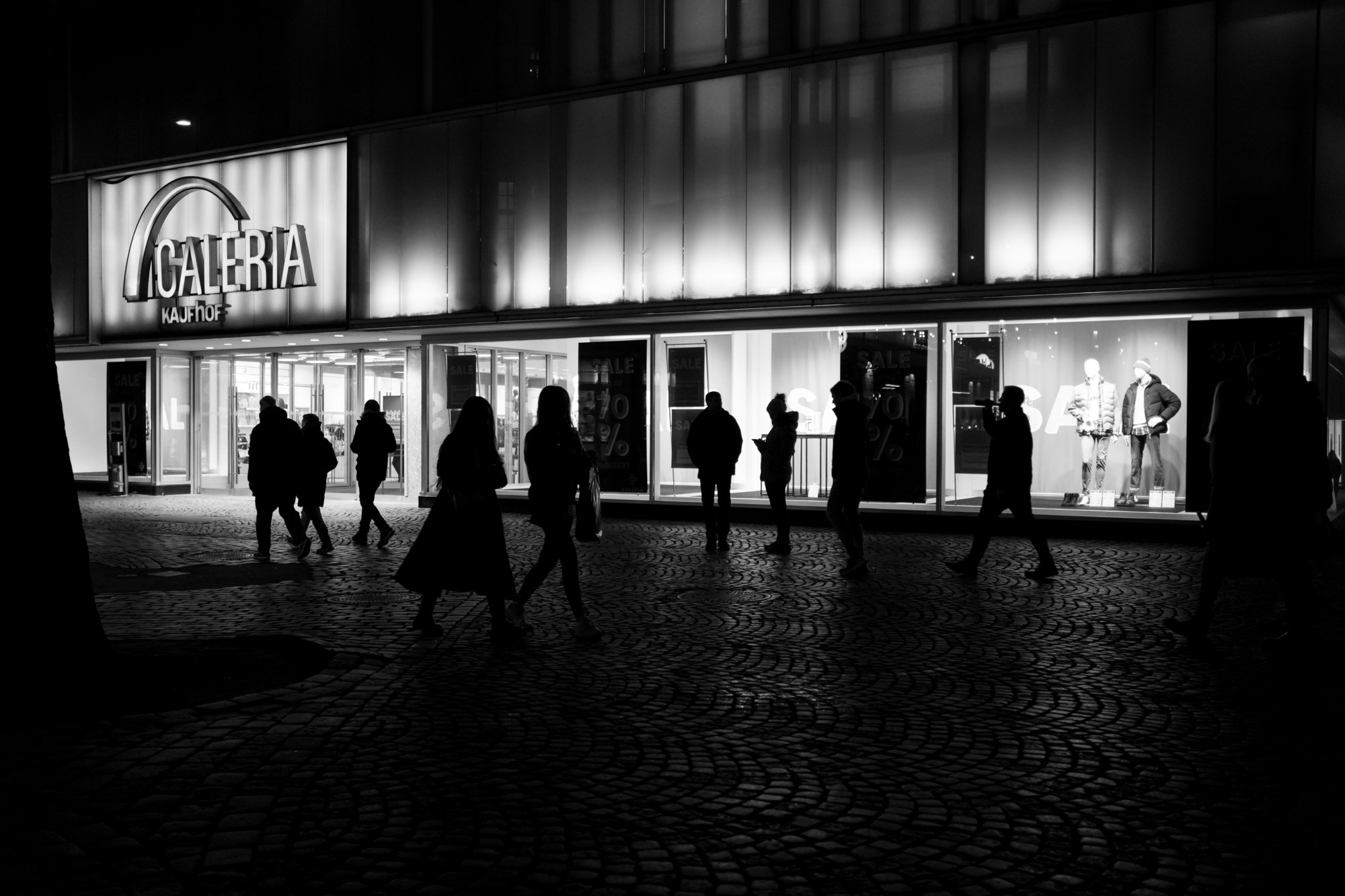 Willkommen zum zweiten Teil meiner Blogreihe "Streetfotografie in Oldenburg".Im Rahmen der Vorbereitung meines Streetfotografie Workshops in Oldenburg hatte ich die Stadt bereits am Tage gescoutet. Da die Ansetzung des Workshops über zwei Tage ging, und der erste Tag an einem Freitagabend für 3-4 Stunden angesetzt war, kam bei mir die Überlegung, den Teilnehmern auch die Magie der Streetfotografie bei Nacht zu zeigen. Ich selbst hatte damals Bilder in der Dunkelheit erst überhaupt nicht auf meiner Agenda. Durch die Corona-Lockdowns Anfang 2021 probierte ich mich auch mal daran aus, und dies gab mir den Startschuss auch nachts auf den Straßen nach Motiven Ausschau zu halten. Mittlerweile mag ich die Fotowalks in der Dunkelheit fast genauso gerne wie am Tage.Also ging es wieder durch die Straßen von Oldenburg, um im Rahmen des Workshops Spots in der Innenstadt ausfindig zu machen. Angefangen Motive zu suchen habe ich beim Kaufhof und dem Platz rund um die Kirche. Ich probierte zum einen die Scheinwerfer der Kirche und die Atmosphäre rund um das Gebäude einzufangen. Außerdem versuchte ich dort vor den hellen Schaufenstern des Kaufhofgebäudes Silhouetten freizustellen. Hier ein paar Ergebnisse dieser Versuche.