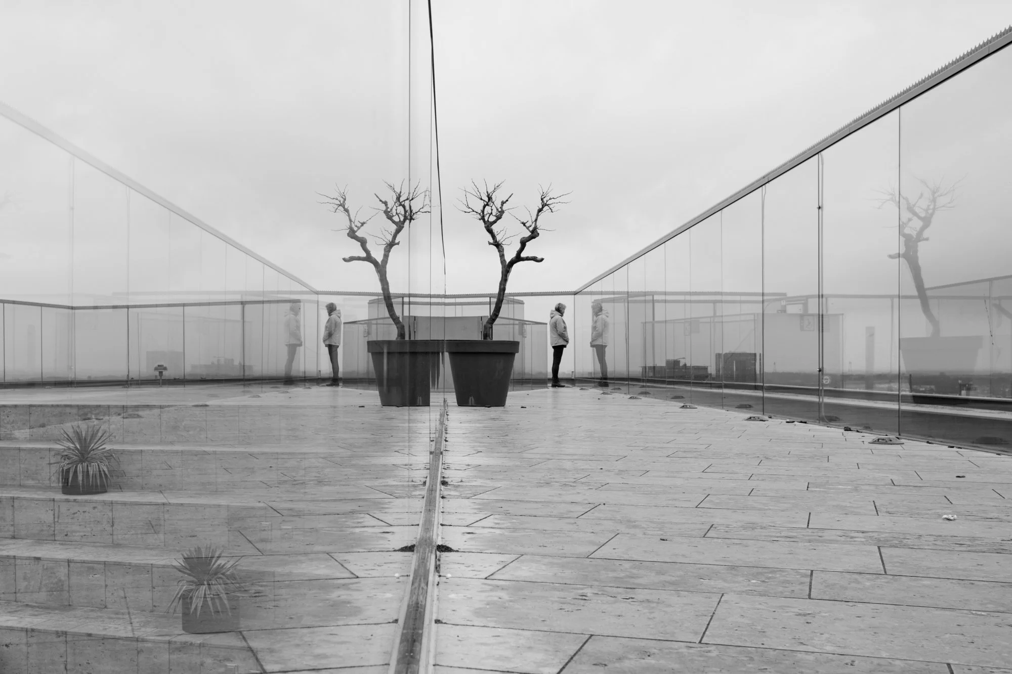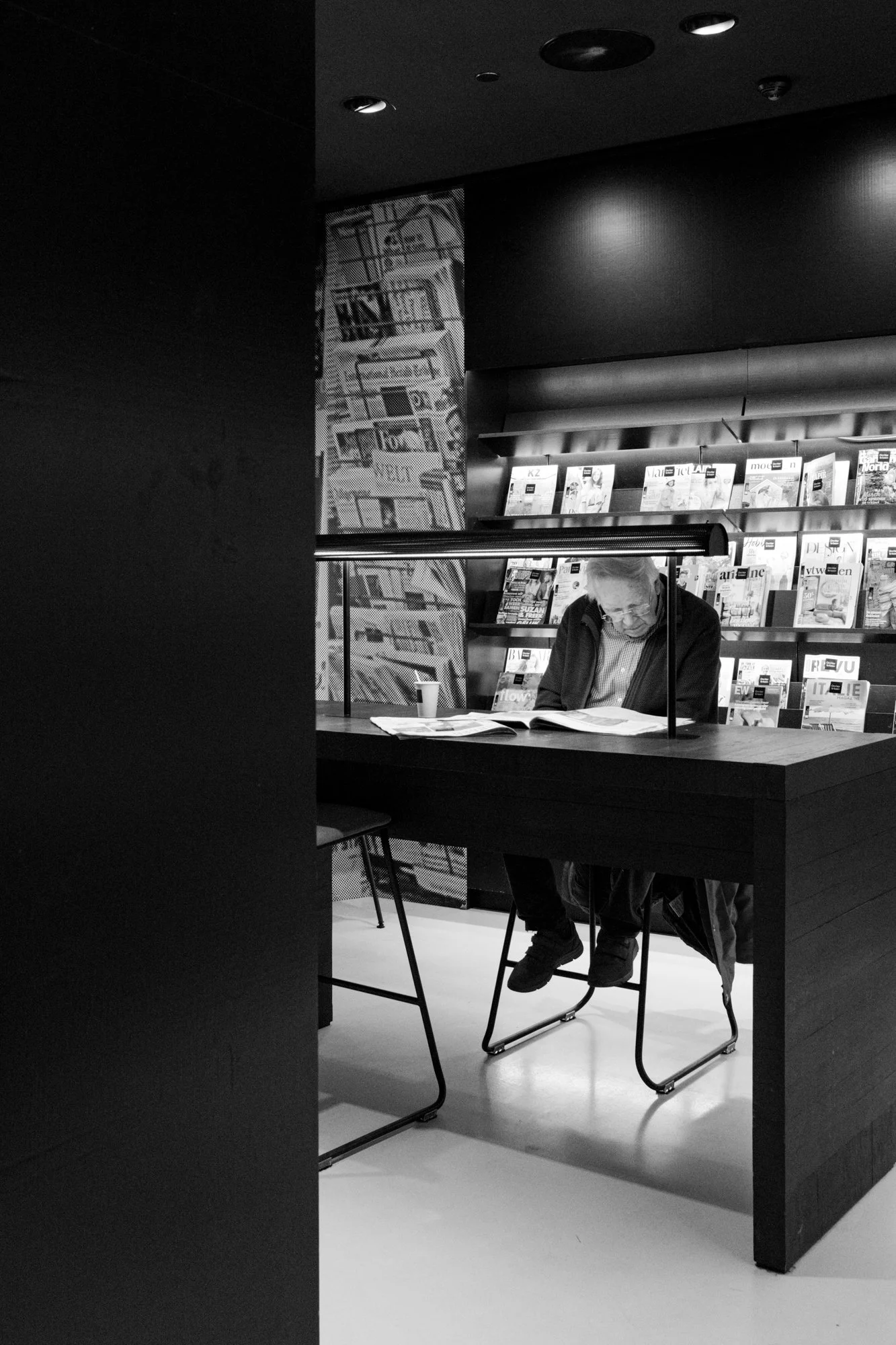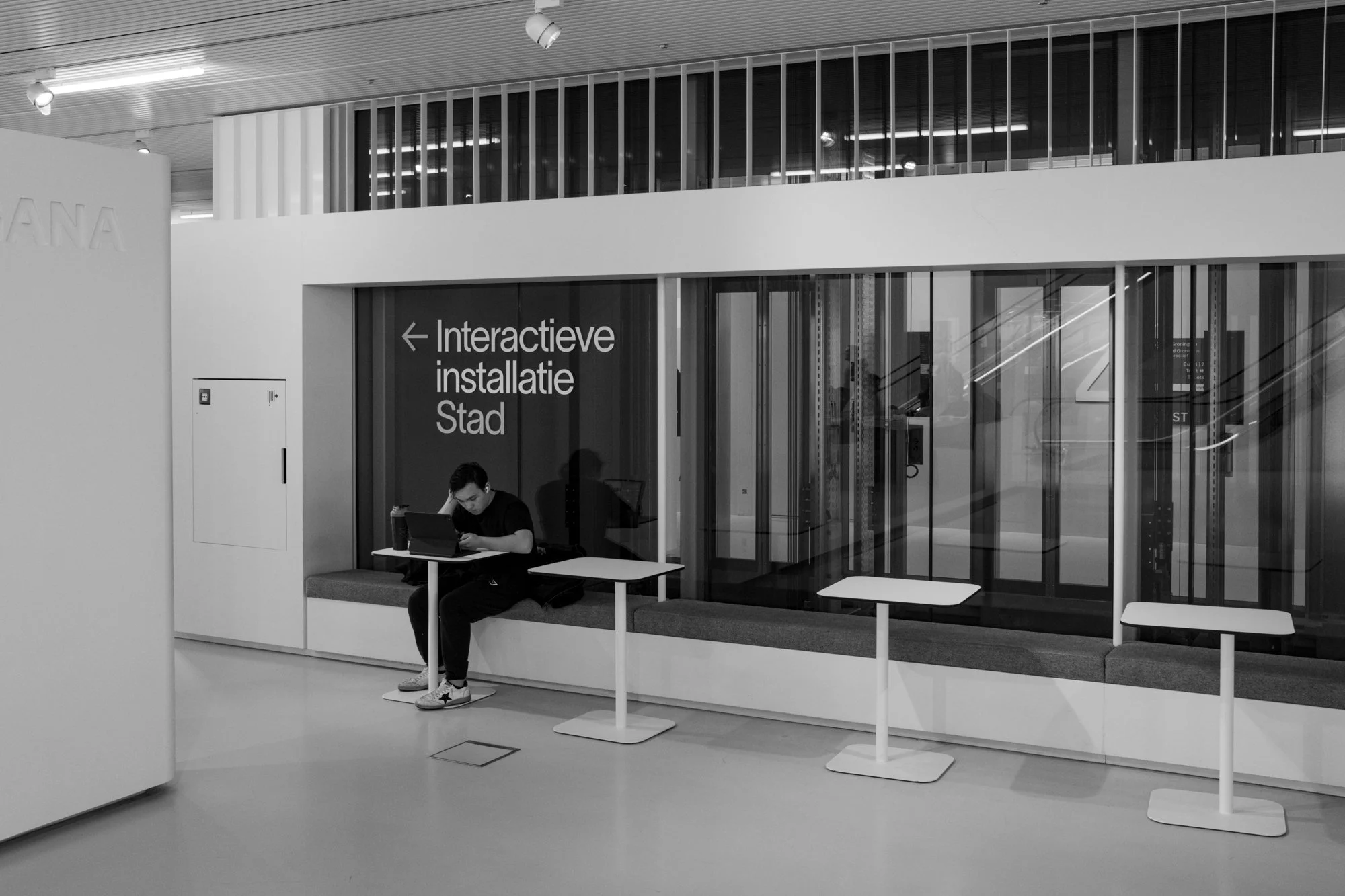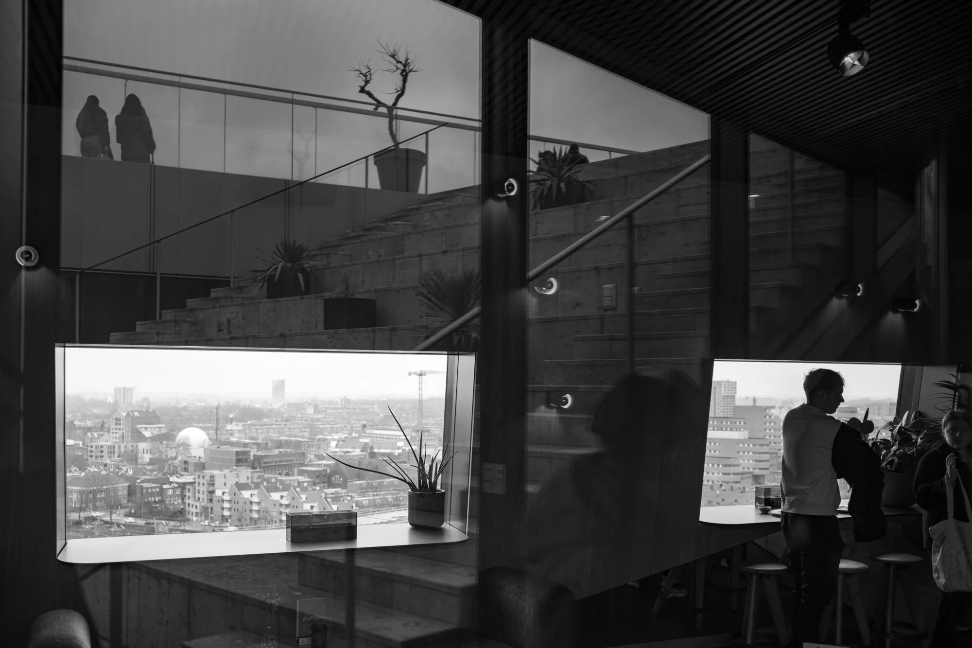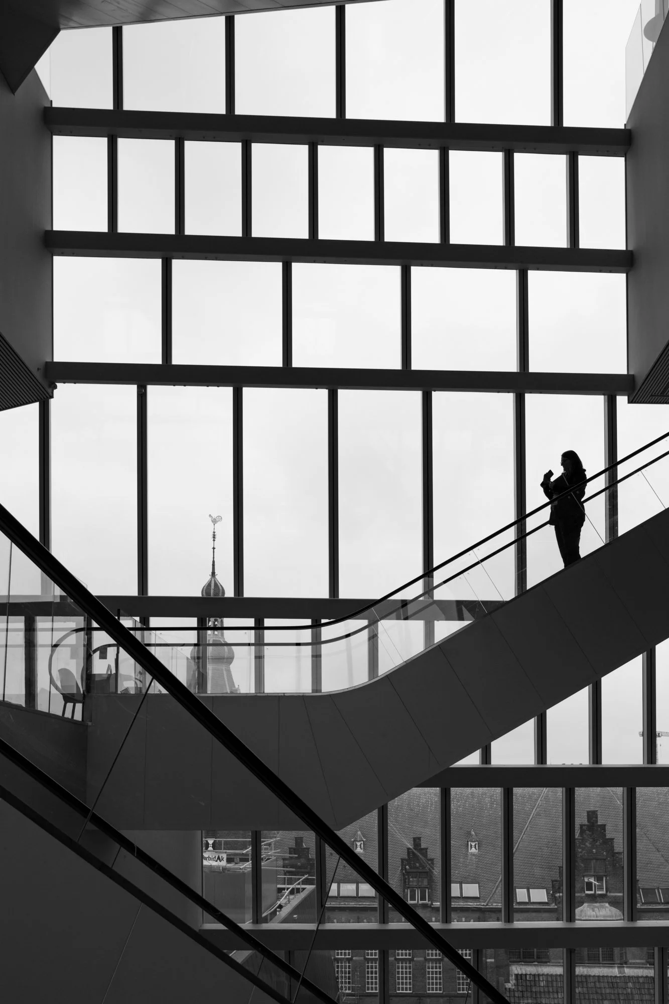 Anschließend machten wir uns auf dem Weg zum Forum. Das Forum ist ein großartiges Gebäude. Es ist Bibliothek, Lernort, Kino, Restaurant und Erlebnisort in eins. Das letzte Mal war ich vor 4 Jahren dort und auch dieses Mal sollte das Forum uns nicht enttäuschen. Wir fokussierten uns auf die Architektur und die Menschen, die dort lernten, lasen oder einfach entspannten. Am Ende ging es rauf auf das Dach, von wo man einen tollen Blick über Groningen hat und mit den Glasfassaden fotografisch spielen konnte.Die Wege dazwischen und nochmal Markt